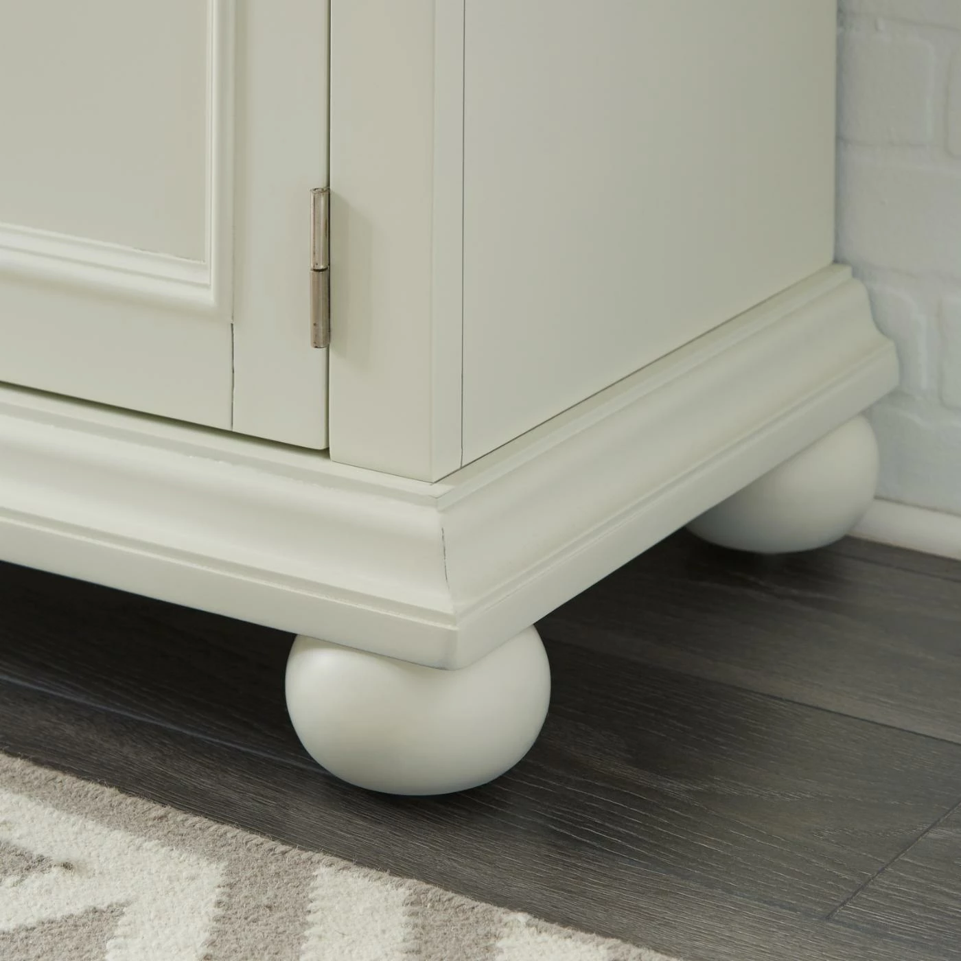 - Distressed white painted finish