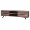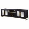 The coastal style of the Hooker Furniture Sorella Entertainment Console offers a design that’s simultaneously dignified and casual. Solid hardwood with hickory veneers is used to create this robust cabinet, while a hand-applied, multi-step finish adds warm tones to the wood underneath a rub-through of pale white, creating the feel of reclaimed lumber. The wide top is large enough of fit most flat-panel TVs, and all of your equipment can easily fit within four interior storage compartments and three full-depth drawers below this wide opening. Two of those storage areas are covered with glass-paneled doors, and the outer two are fitted with wood-panel doors. Each opens to reveal an adjustable shelf that’s perfect for consoles, components, and extra media. A three-plug outlet in the cabinet helps with your power needs.