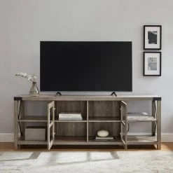 Two central doors (with soft-close hinges so they won’t slam shut) open onto adjustable shelving. This media console requires assembly before use. It arrives with easy-to-follow instructions for your convenience.