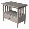 Slatted sides give the International Concepts Mission Entertainment Stand its mission appeal. This entertainment center is constructed from solid wood with butcher block surface and is left unfinished. It includes adjustable shelving plus a wood framed glass door for media components, movie storage, and display pieces.
