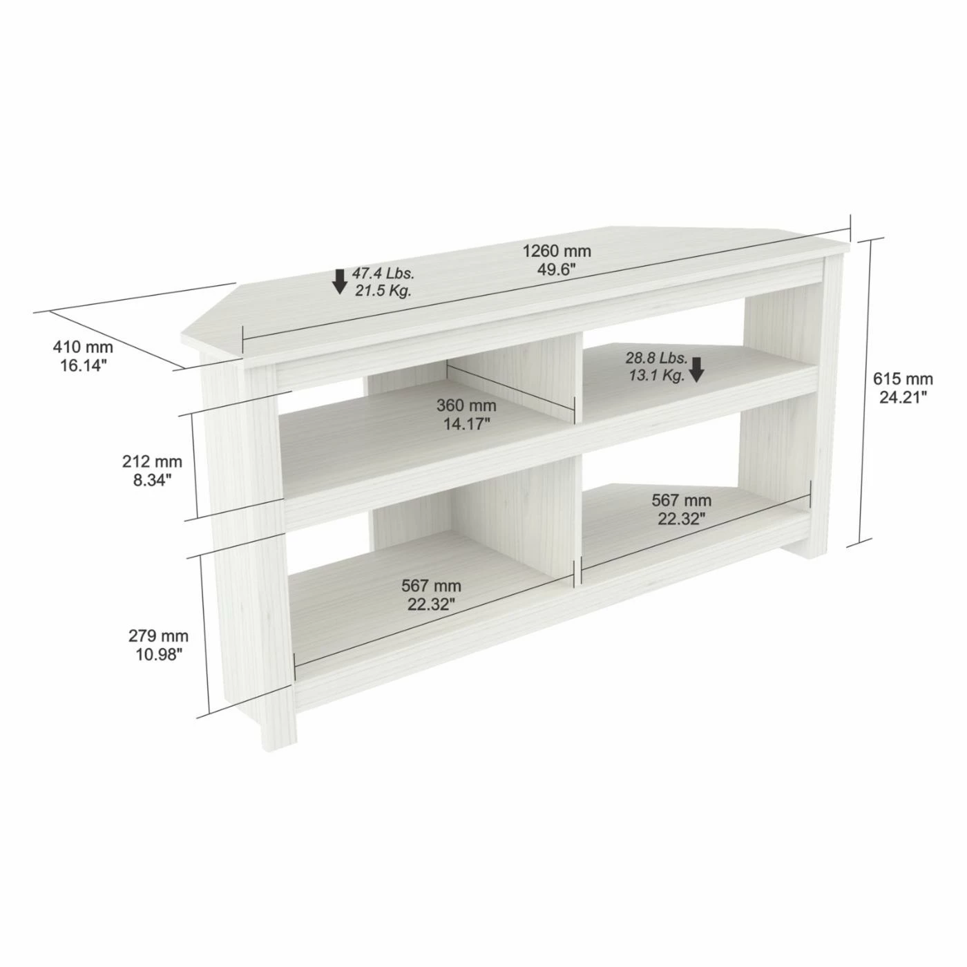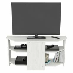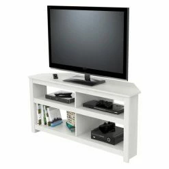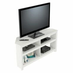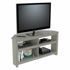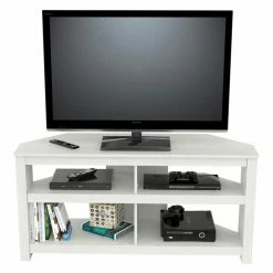 Elevate your modern living room with the Inval Corner TV Stand. It’s durably constructed to hold up to a 60-inch television, while open shelving provides space for showcasing your electronics. Choose from the available finish options to further enhance your contemporary living room.