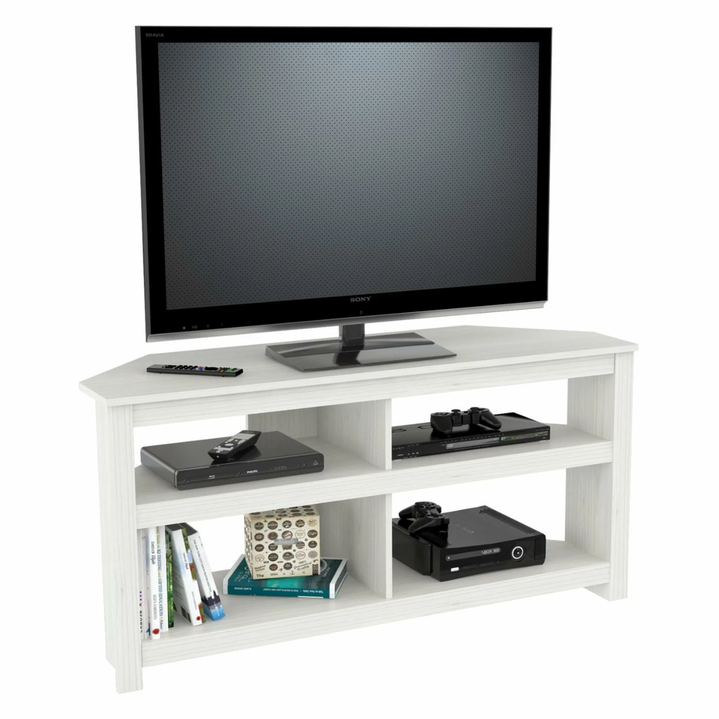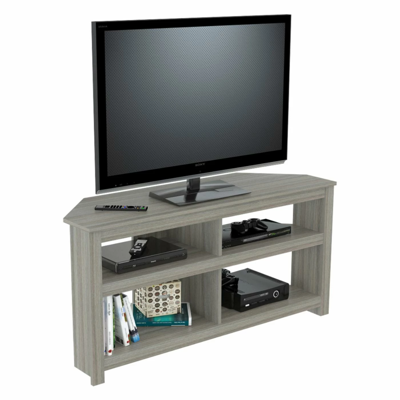 - 4 open shelves to organize your electronics