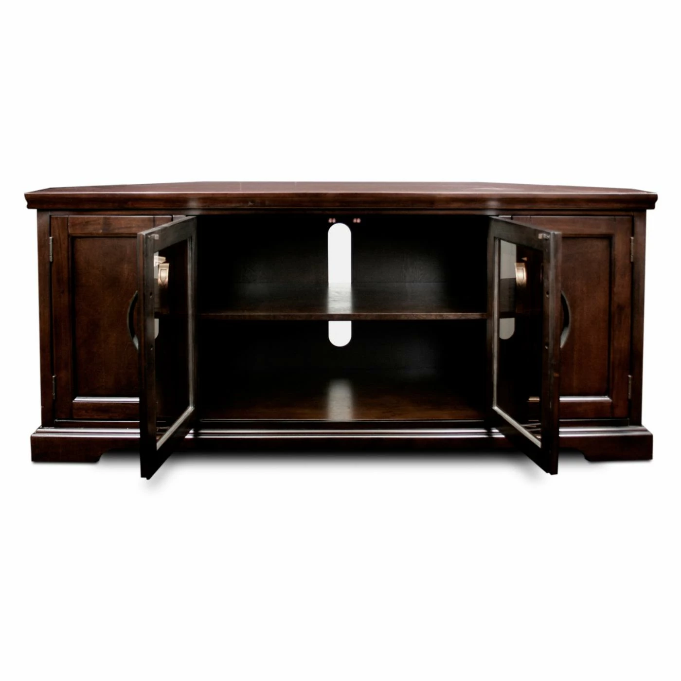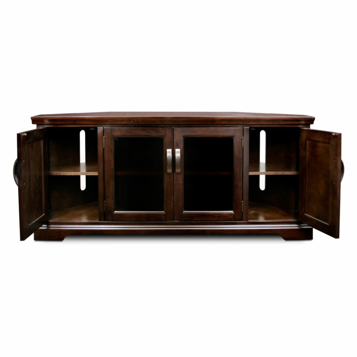 The Leick Home 56 in. Corner TV Stand β Chocolate Oak is as sturdy and spacious as it is simple to assemble. The solid wood living room staple requires only easy unfolding assembly, so you have all the concealed storage you need in a flash. Pack away games, movies, electronics and more in this traditionally beautiful corner TV stand.