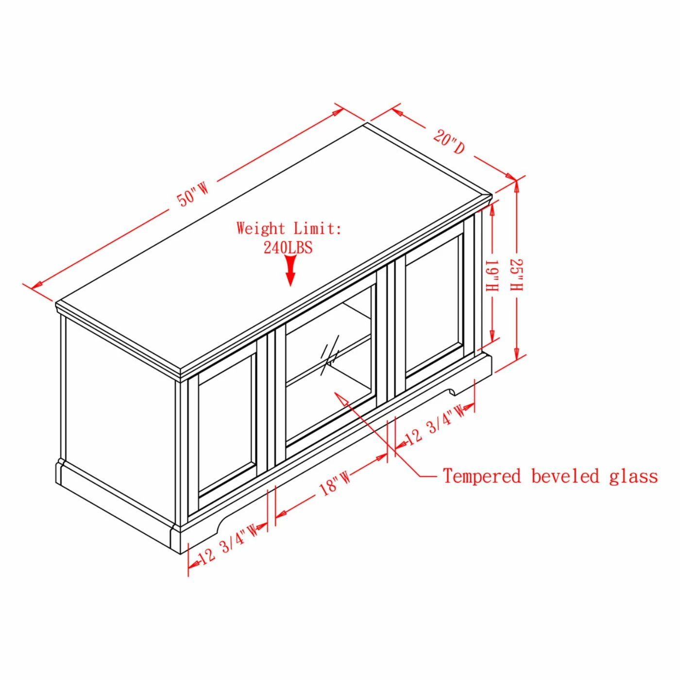 - Dimensions: 50W x 20D x 25H inches