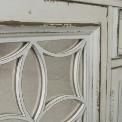 - 2 antique mirrored doors, 2 wood-framed glass doors, 1 drawer