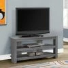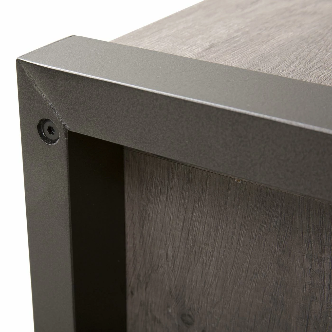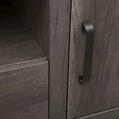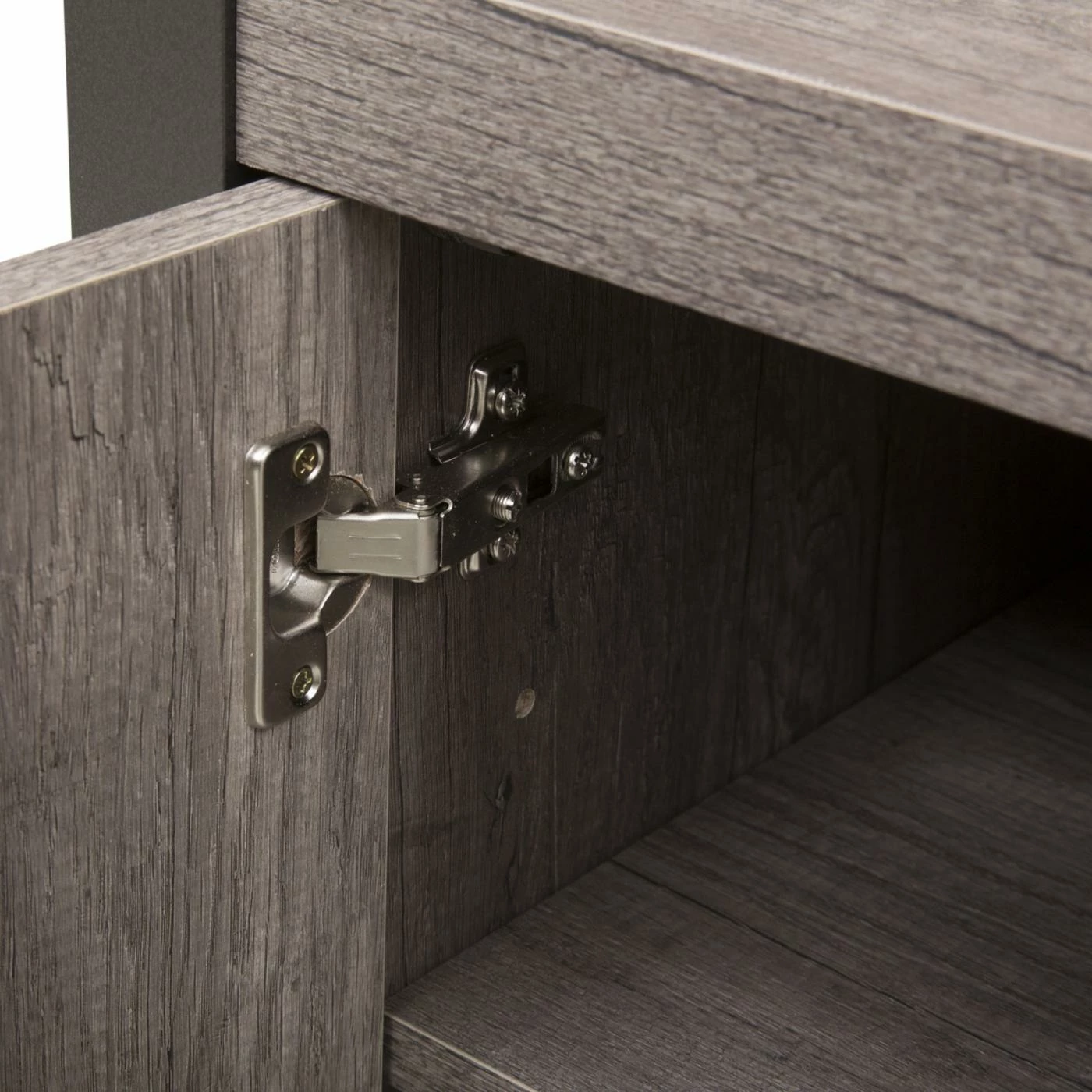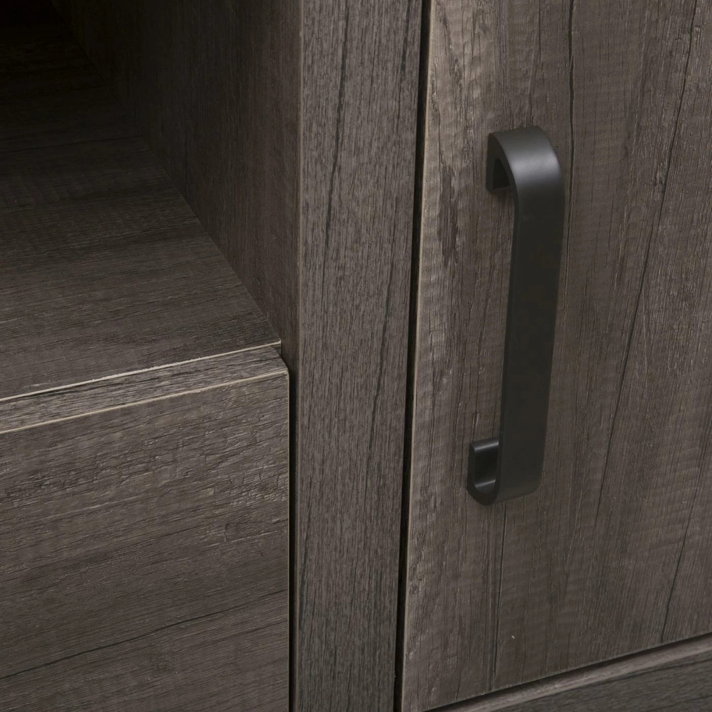The Liberty Furniture Industries Tanners Creek TV Stand has plenty of space for your TV, media library, and more. The TV stand features one open shelf and one drawer. The two side cabinets keep your media center looking neat and organized. This piece is built from solid rubberwood with a metal frame in a gray finish.