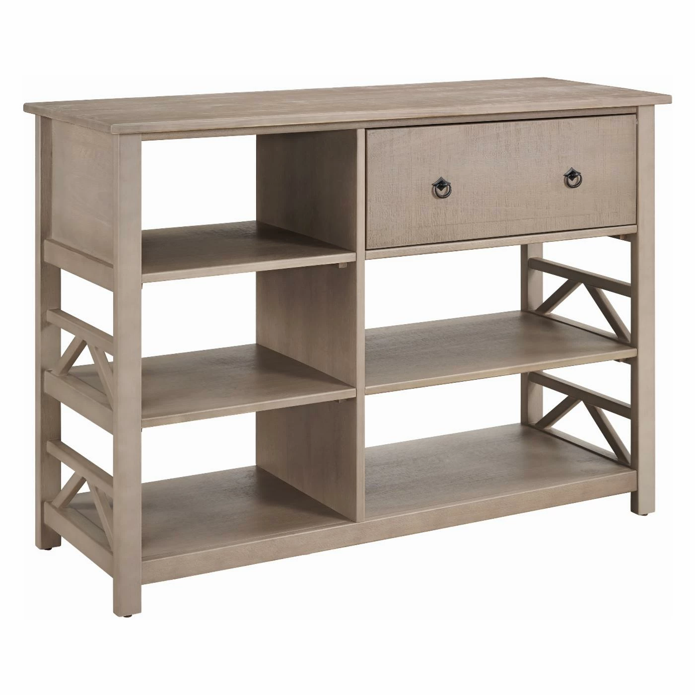 Infuse charm and style into your family room with the Linon Titian Tall Media Center. This handsome piece has a body of solid pine with paper veneers that are finished in your choice of available finish options. Five deep shelves offer plenty of room for AV components, media, or even a few books or decorative objects. A deep drawer with two metal pulls gives you the covered storage that you’ll need for media, controllers, and remotes.