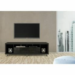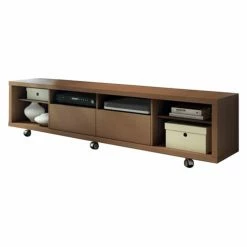 You’ve got options galore when you install the gloriously contemporary Manhattan Comfort Cabrini TV Stand. You can set your TV directly on the stand, mount it on the wall with your own hardware, or purchase the matching Cabrini TV panel to suspend and frame your TV on your wall like a prized piece of art. The entire unit comes with wheels so you can effortlessly roll it out to access outlets and cables. With six open cubbies and two gliding drawers, there’s plenty of storage space for all of your devices, controllers, and accessories.