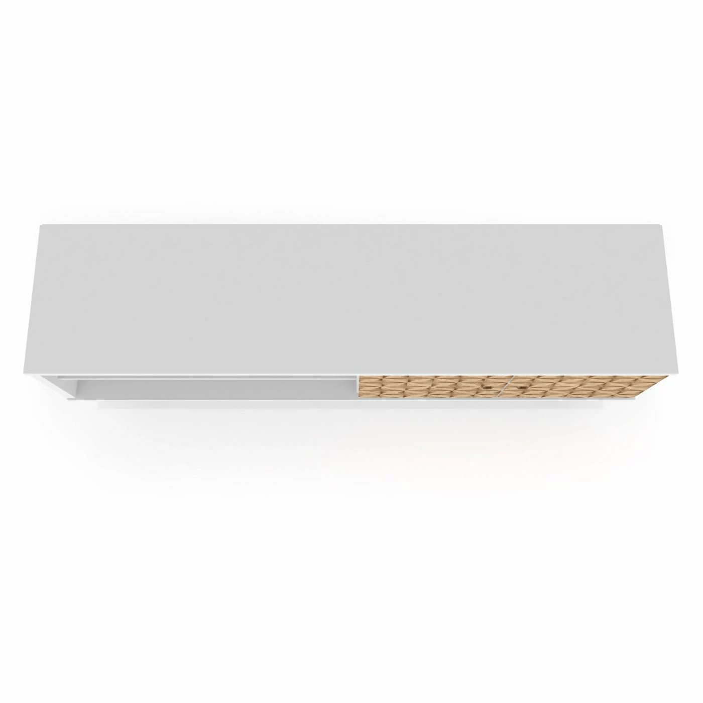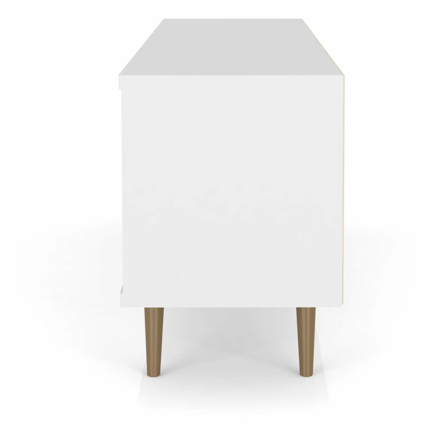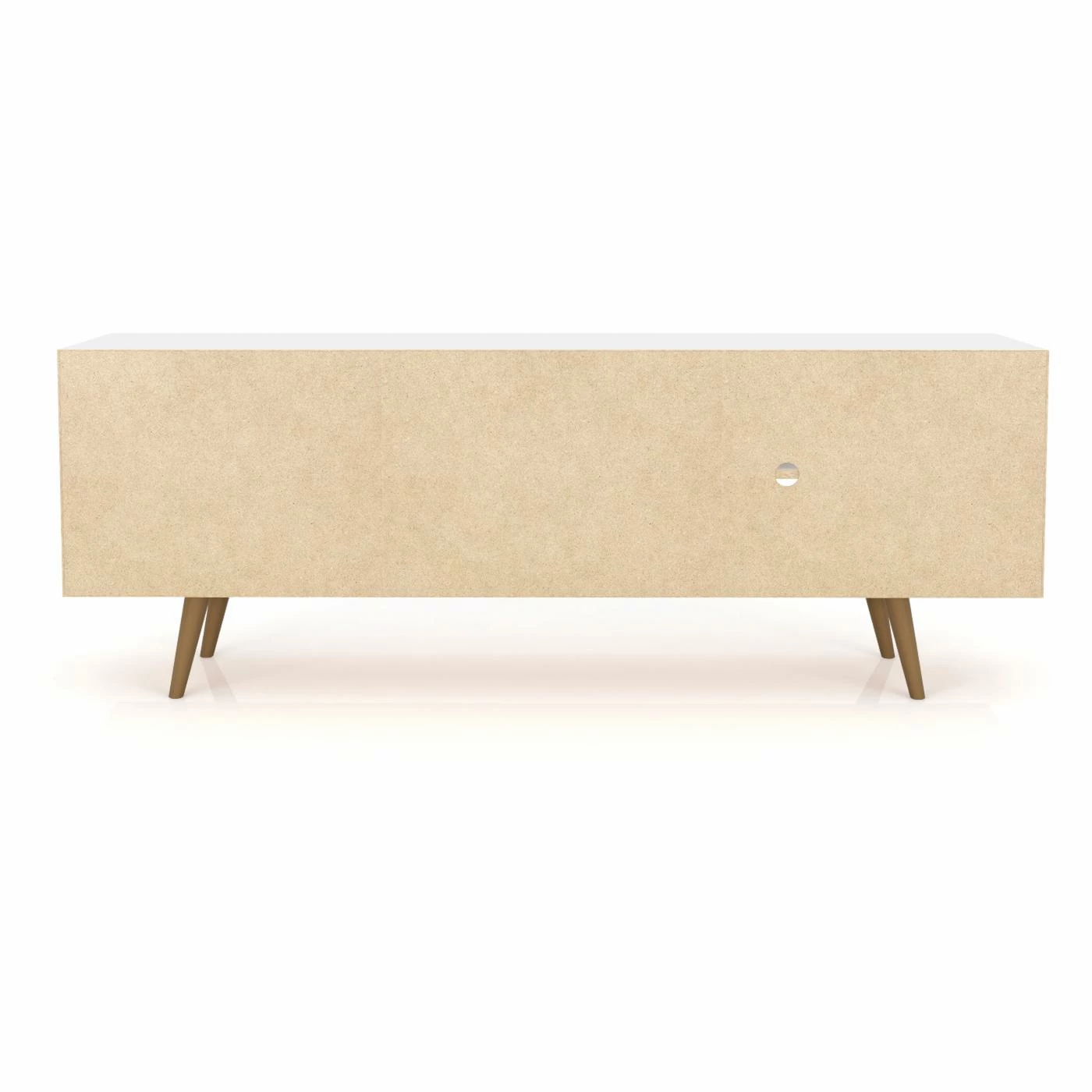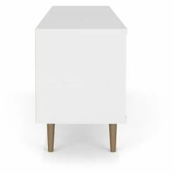 The Manhattan Comfort Liberty 2 Door TV Stand with 3D Print offers a welcome update to our living space. The mid-century style of this TV stand includes splayed, solid wood legs. For a chic touch, it features a fun 3D printed design on two of its doors. Open shelving and concealed storage allow you to organize and store media consoles and accessories. This TV stand is constructed of engineered and solid wood in choice of available finish options.