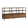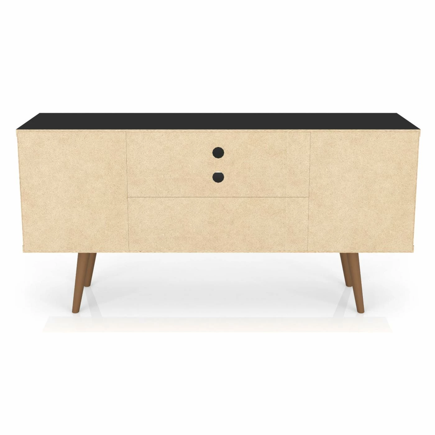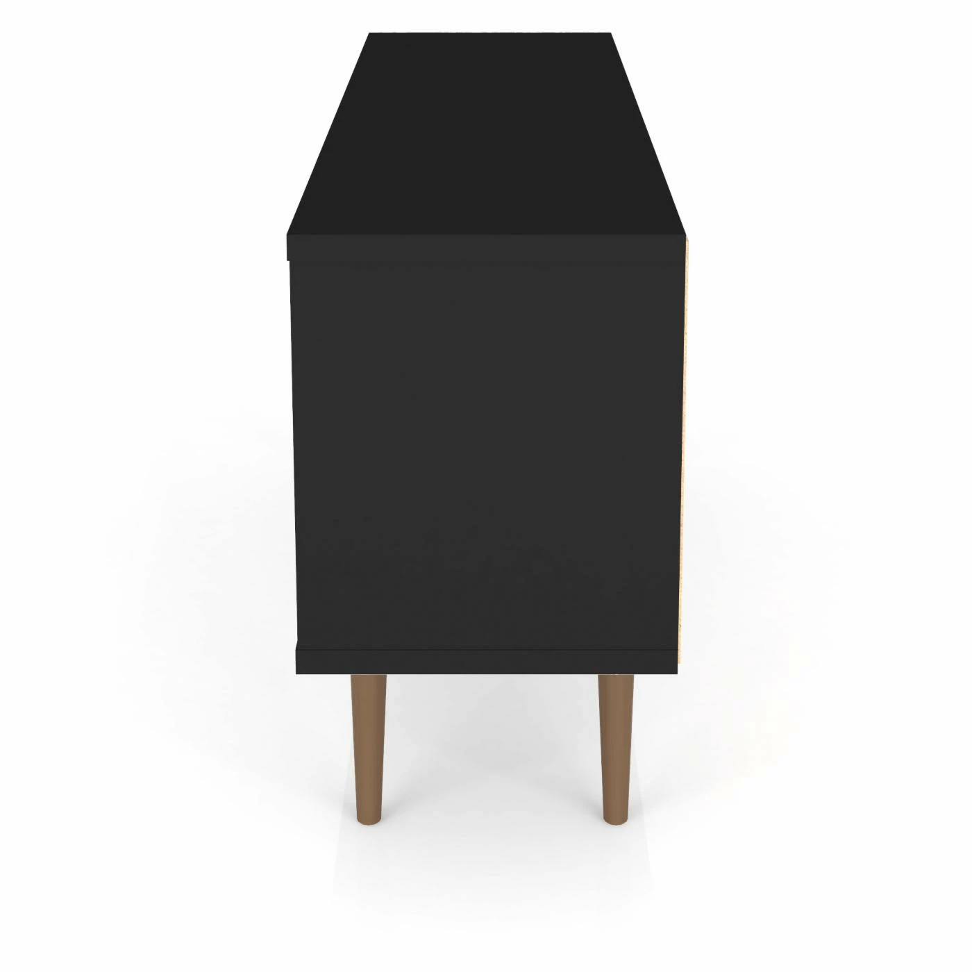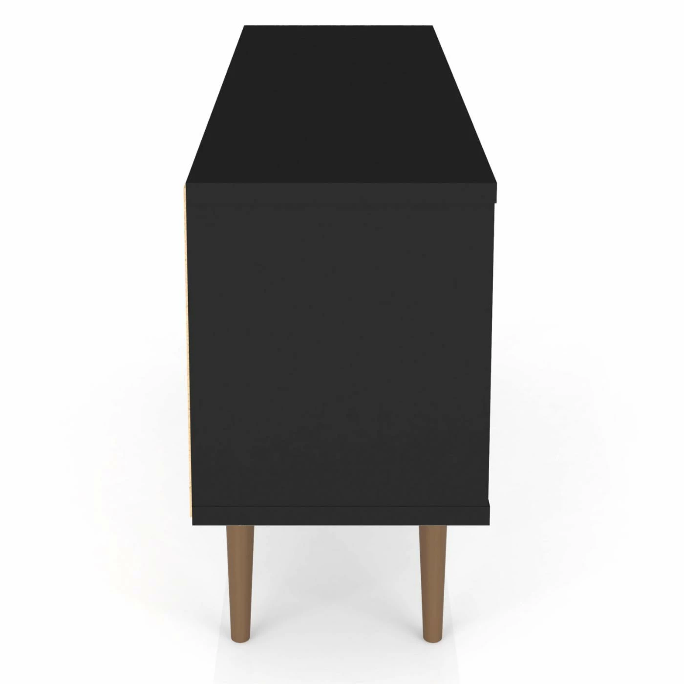Bring a contrasting look to your living space with the Manhattan Comfort Liberty TV Stand. This durable TV stand is constructed of engineered wood in black with splayed solid wood legs. It provides ample storage space for your media accessories with open shelving and cubby additions.