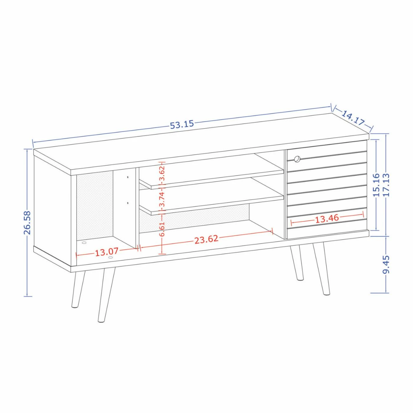 - Dimensions: 53.14W x 14.17D x 26.57H in.