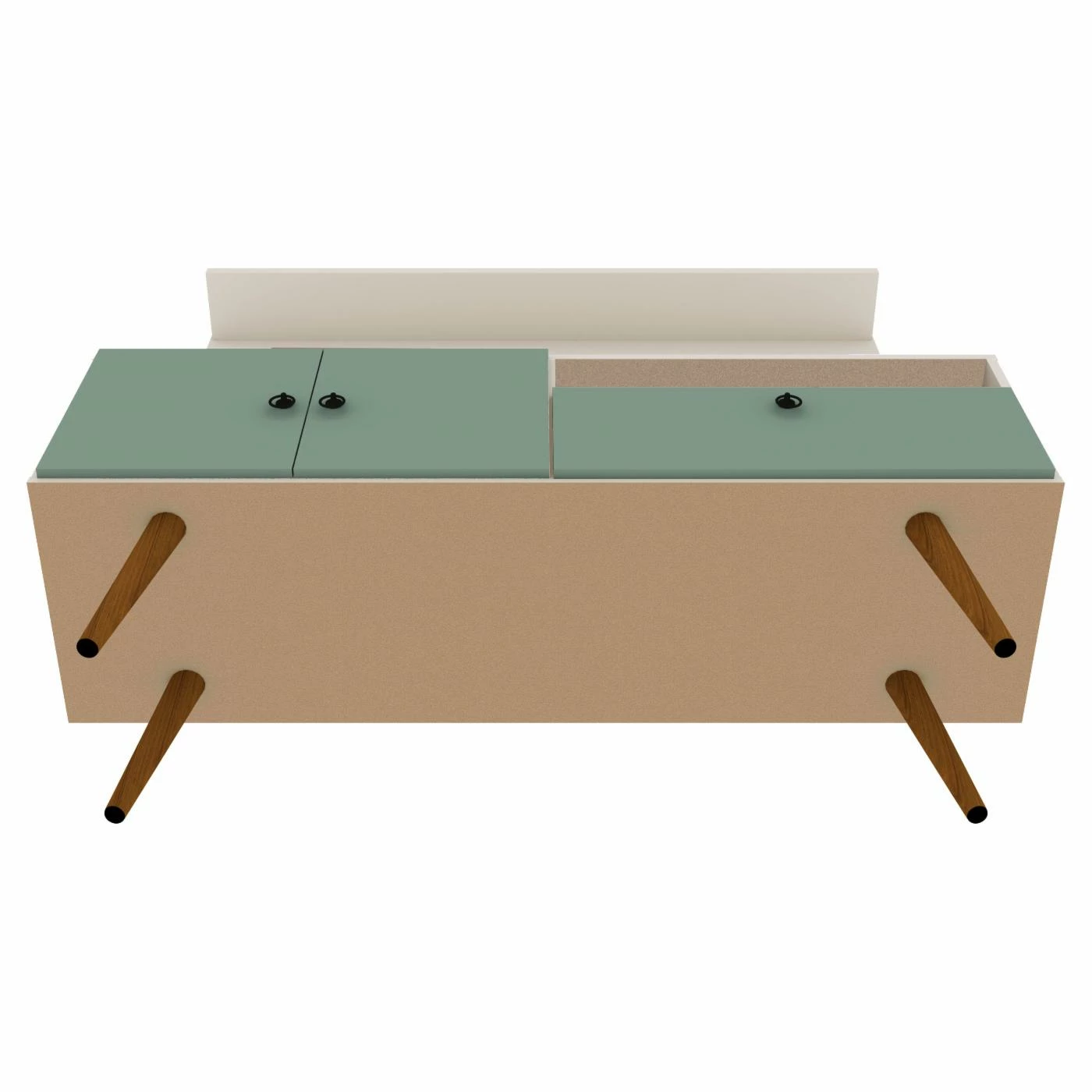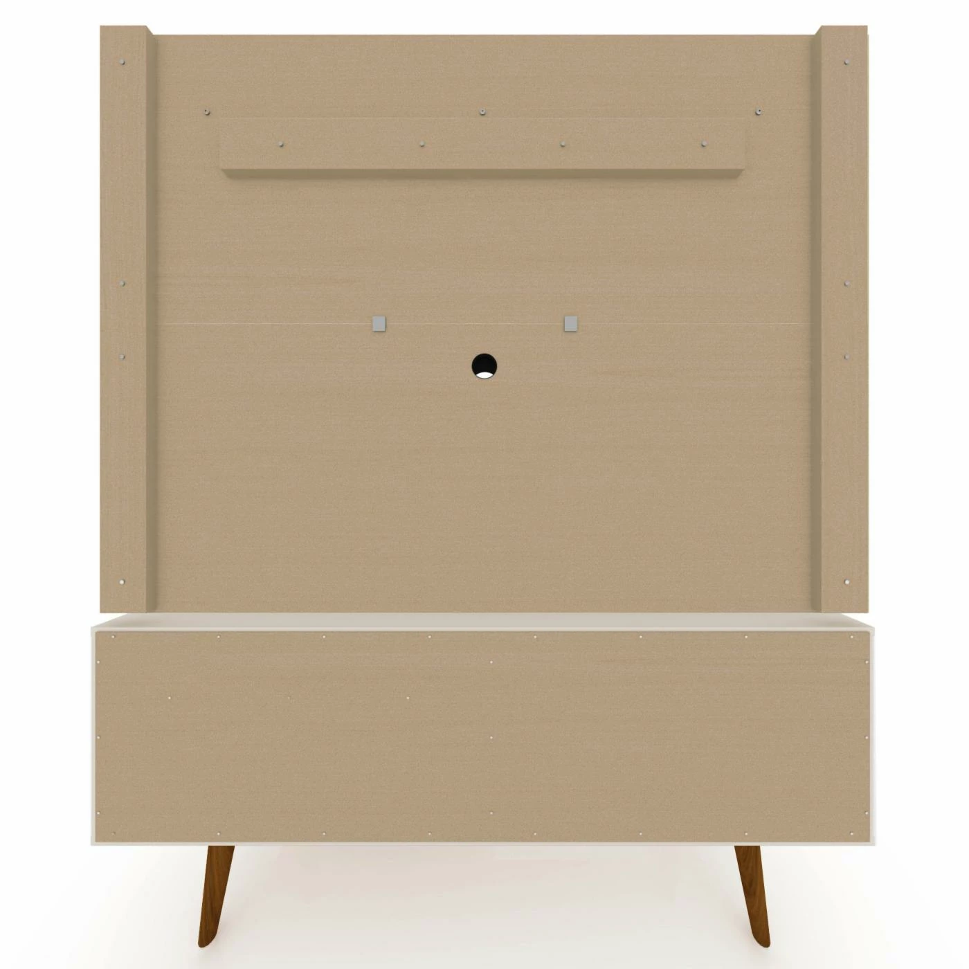 - TV stand is supported by angled, tapered legs