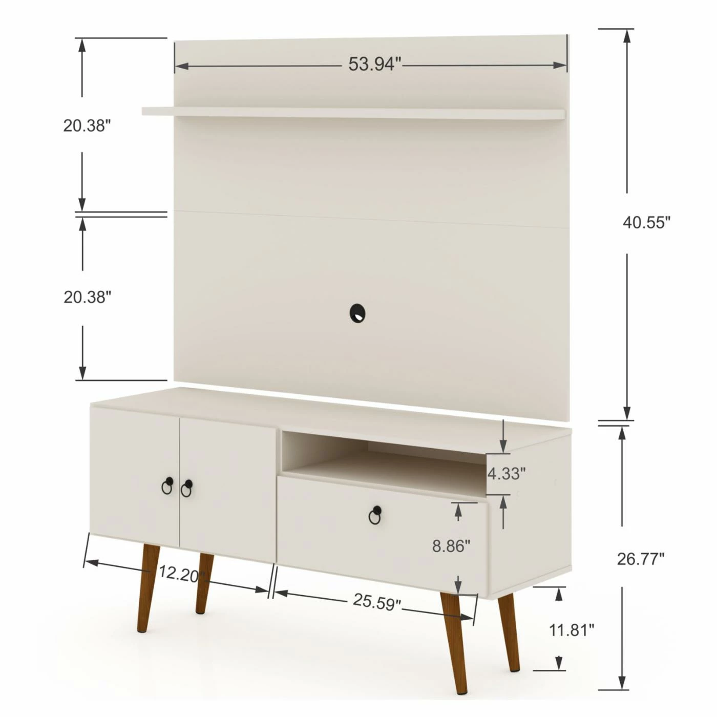 - TV panel dimensions: 53.94W x 15.75D x 67.32H in.