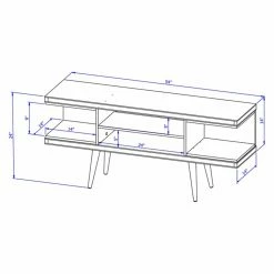 The sleek and smart Manhattan Comfort Utopia TV Stand offers four open shelves and mid-century modern style. This engineered wood TV stand boasts splayed solid wood post legs that give it that smooth, contemporary silhouette. It’s offered in your choice of available finish and size.