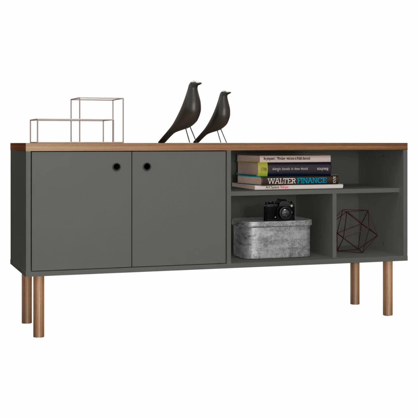- 3 open compartments for display