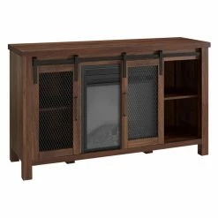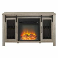 Add warmth and rustic style to your living room with the Manor Park 48 in. Rustic Farmhouse Fireplace TV Stand. Featuring an electric fireplace in the center, youโll love cuddling up in front of a warm fire to watch your favorite TV show. Crafted from high-grade engineered wood with a wood grain look and your choice of available finishes, this piece elevates the look of any room. An adjustable shelf behind each sliding door gives you ample space for media devices, gaming consoles, DVDs, remotes, and more.