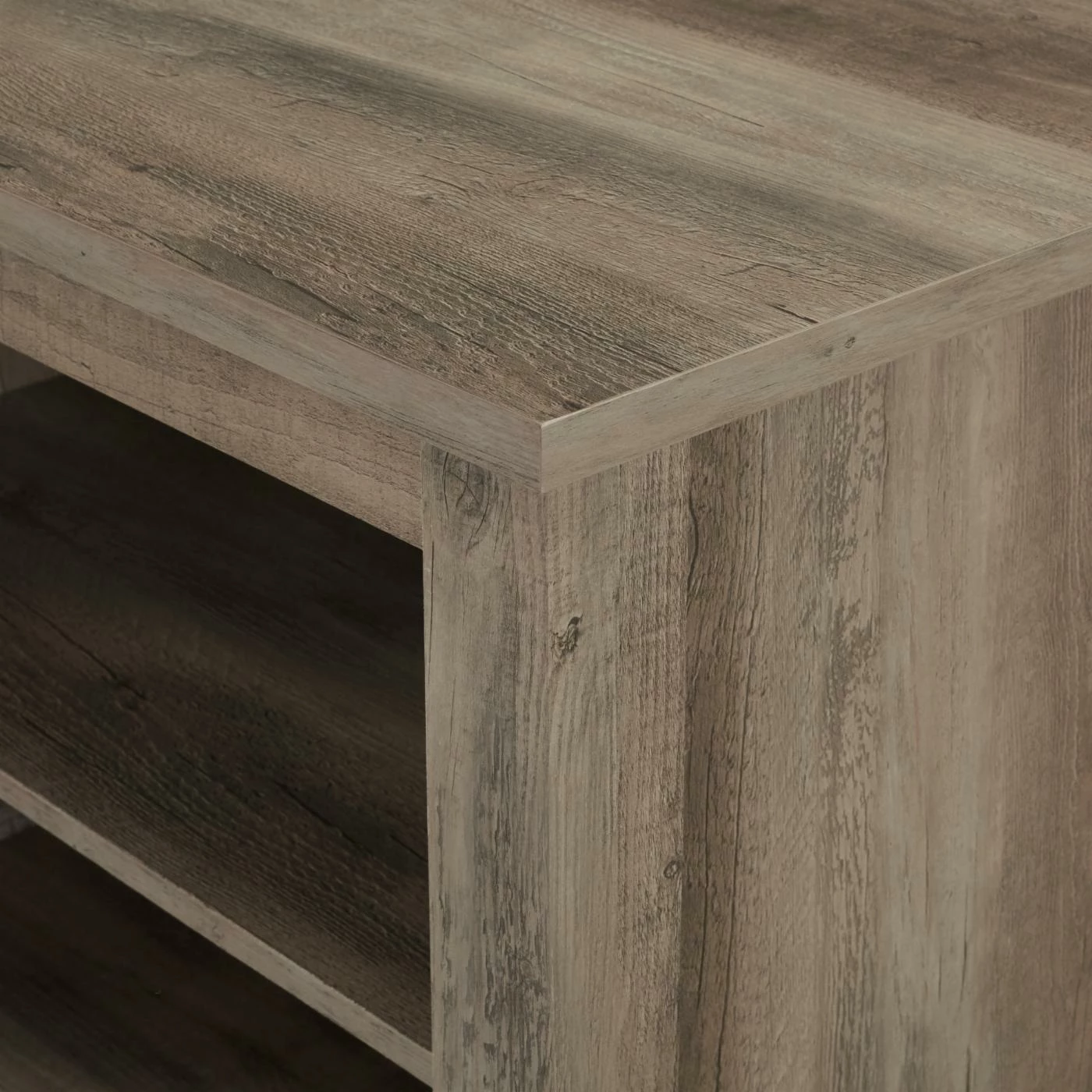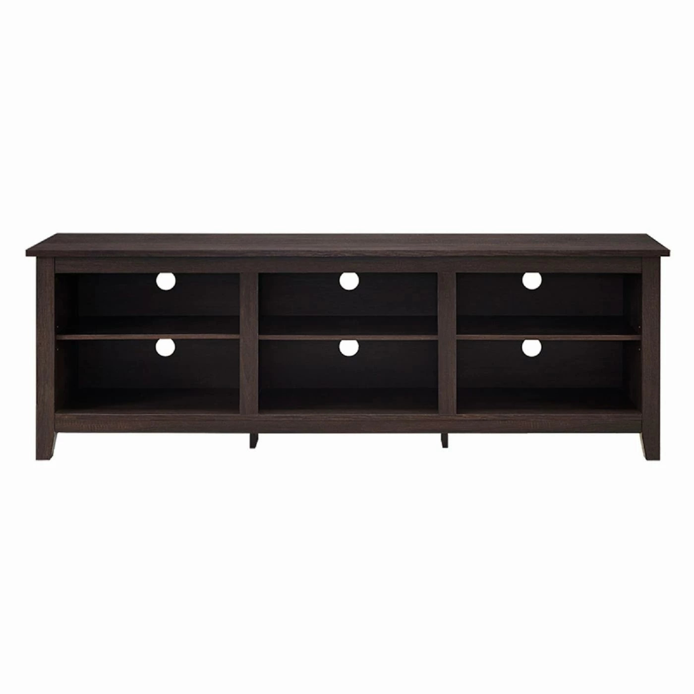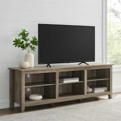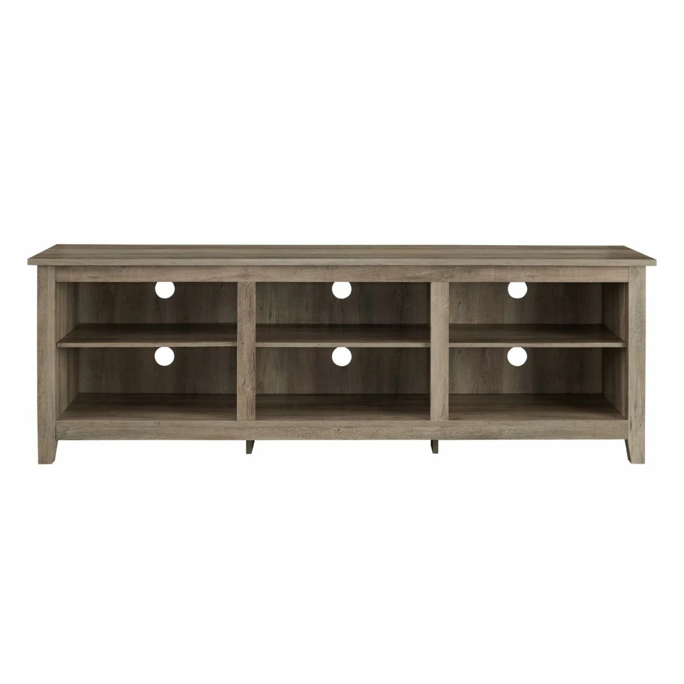 Entertain everyone with the Manor Park Essentials TV Stand. Truly an essential, this contemporary, low-key TV stand features six spacious, open compartments for housing media components and any other dรฉcor or mementos. Made of high-quality engineered wood and laminate veneer, it’s finished in your choice of color to best suit your space. The shelves are adjustable so you can customize to your display needs. This piece holds most TVs up to 78 inches.