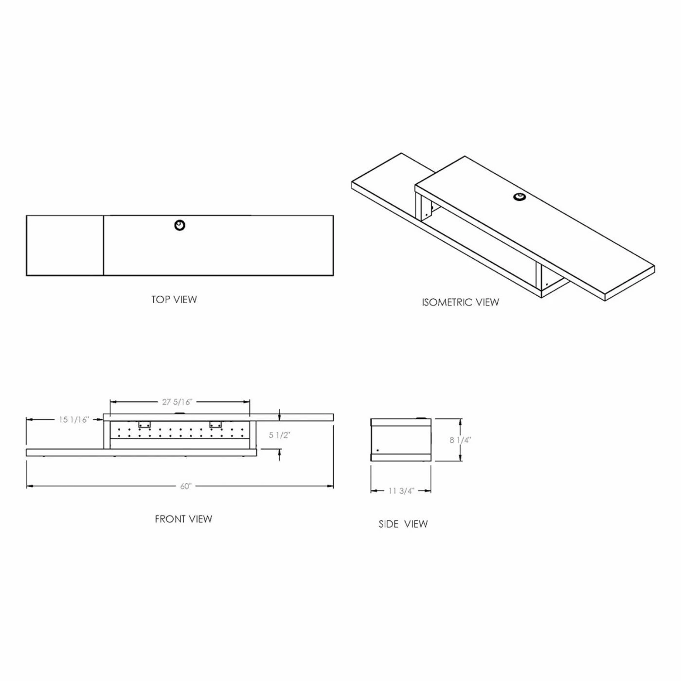 - Dimensions: 60W x 11.75D x 8H in.