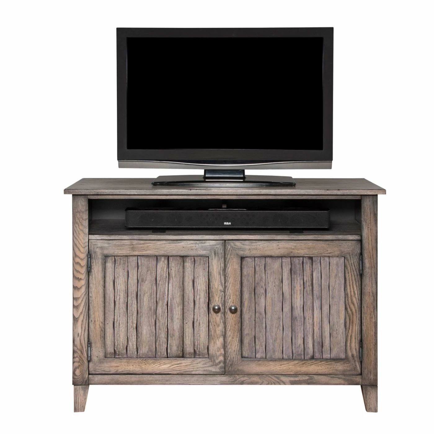 Ideal within contemporary homes, the Martin Furniture Eclectic Harmon 40 in. TV Console brings a welcoming rustic feel to any space. Made of sold hardwood and veneers, this console features a weathered greige finish. Holding most TV screens up to 50 inches wide, organizing your electronic media is made easy with two enclosed storage spaces and open shelving.