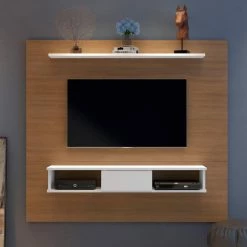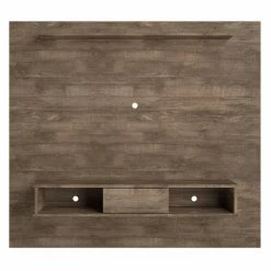 A great solution for modern spaces with concrete walls, the Midtown Concept Kansas Mid-Century Shelf TV Board attaches securely to your wall and offers a way to mount your flat screen TV in rustic style. This TV board also provides open and enclosed shelving and cord management holes for a tidy look. It’s built of durable engineered wood and comes in your choice of available distressed finish.