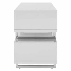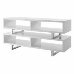 Bring a fresh, contemporary air to your interior space with the Modway Amble TV Stand, featuring an open-back design with four stacked shelves for media storage. This versatile TV stand accommodates televisions up to 45-inches wide and features a scratch-resistant melamine surface for a new look that lasts. The polished steel supports provide added stability to safely support your media devices, while adding a touch of subtle shine to your dΓ©cor.