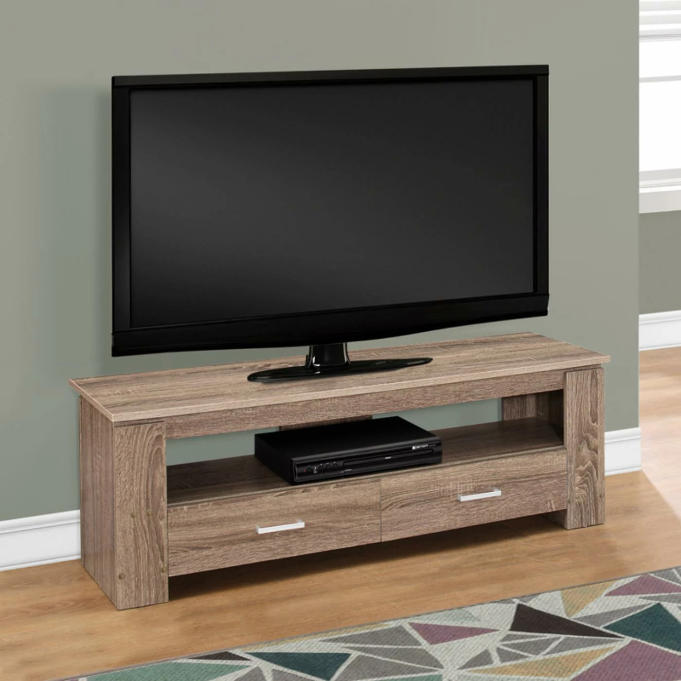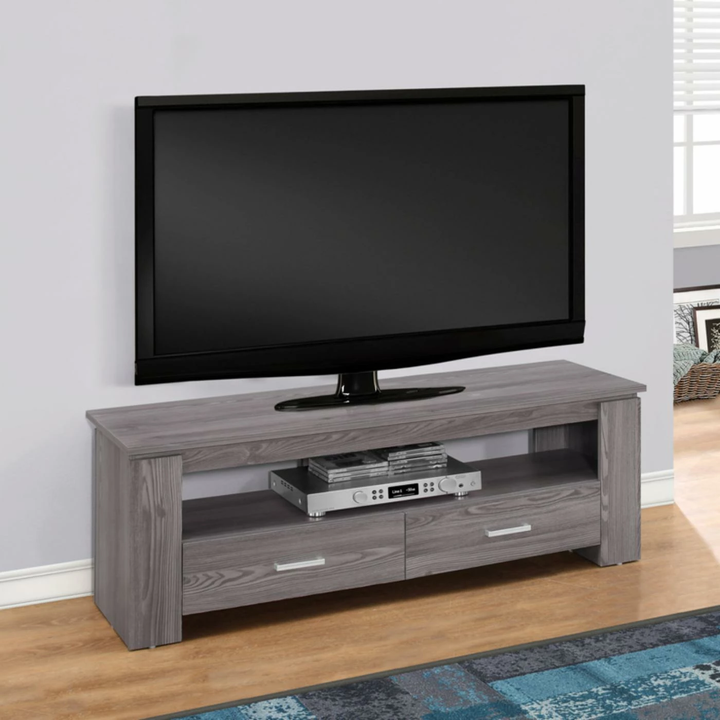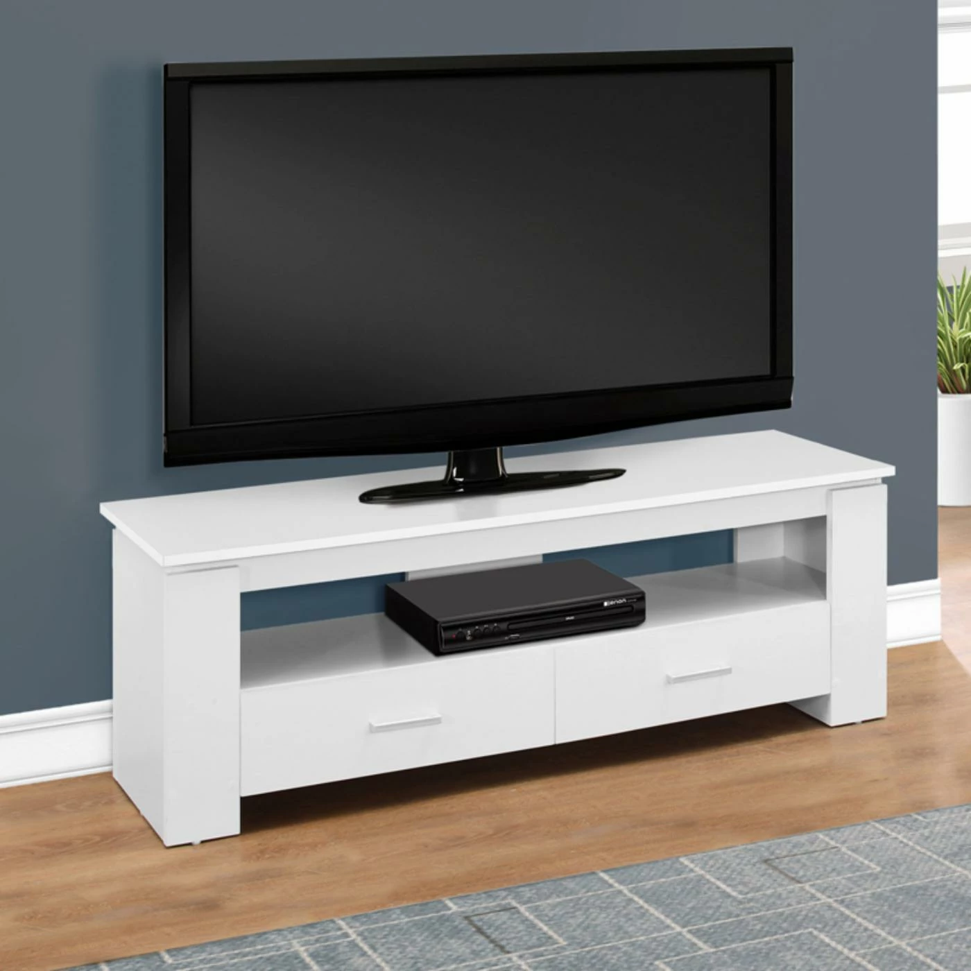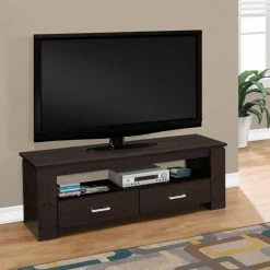 Set up your living room right with the Monarch Specialties 48 in. TV Stand with 2 Storage Drawers, or tuck this low-profile TV stand into your den or master suite. Thick panels of eco-friendly engineered wood form this media console. With a long open shelf, you can use a sound bar or accommodate all of your gaming and digital accessories. Two drawers in the lower level allow concealed storage. The assembly process goes smoothly with complete instructions included.
