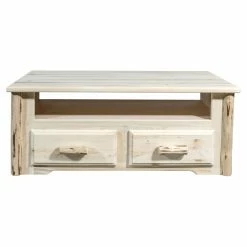 The Montana Woodworks Montana 2-Drawer Sitting Chest is a true rustic classic. This chest is sturdy enough to be used for extra seating and features an open shelf and two drawers. It’s handcrafted in Montana from solid, U.S.-grown, lodge pole pine wood and detailed with skip-peeled accents. This sitting chest is offered in your choice of available finishes.