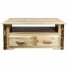 The Montana Woodworks Montana TV Stand is both a sitting chest and entertainment center. It will be a welcomed addition to your bedroom, study, living room, or home theater. This TV stand provides plenty of room on top for your large flat screen TV, has an open shelf for media components, and three drawers to keep things organized. This handcrafted TV stand is made in Montana from solid, U.S.-grown, lodge pole pine wood. It’s offered in your choice of available finishes.