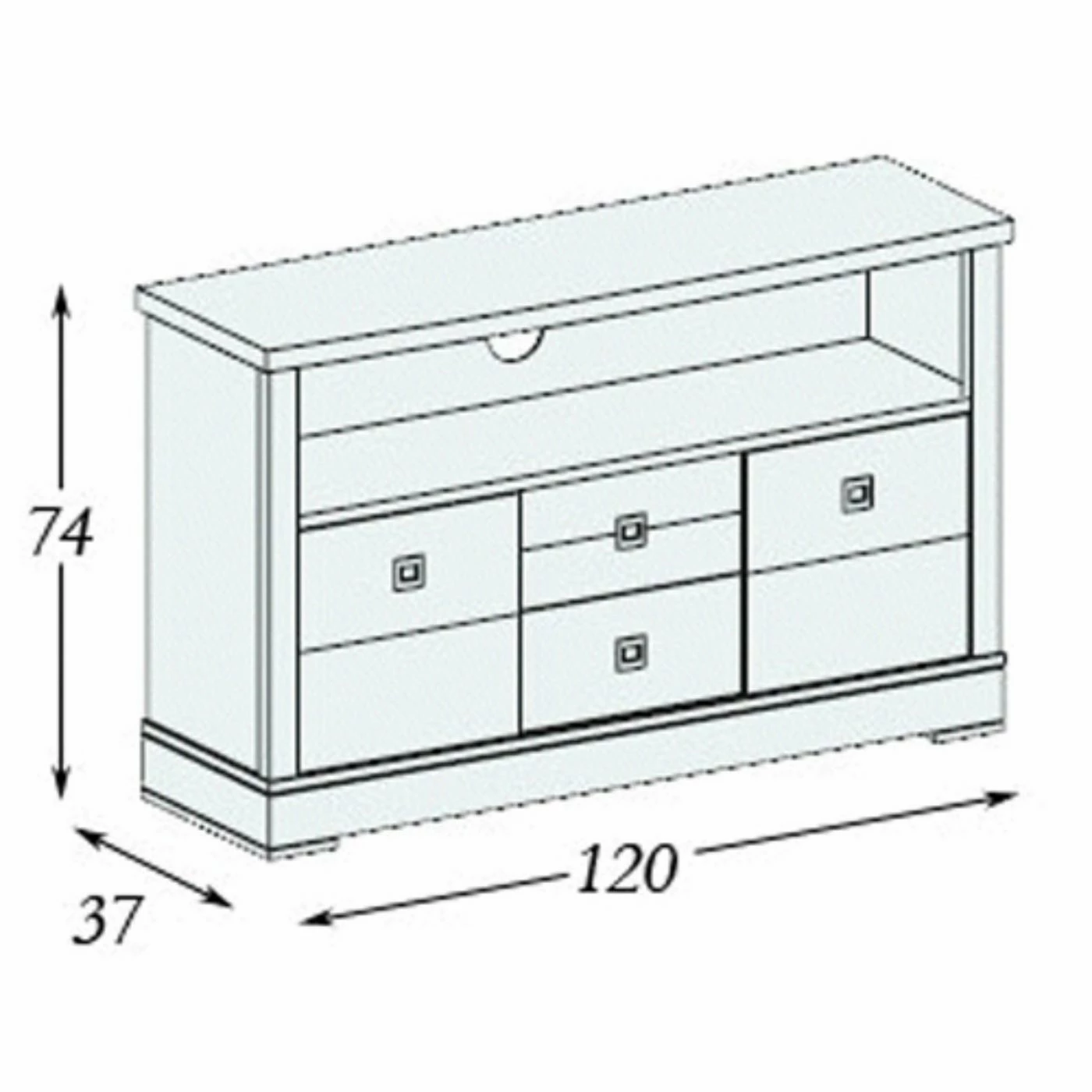 - Deep open console shelf