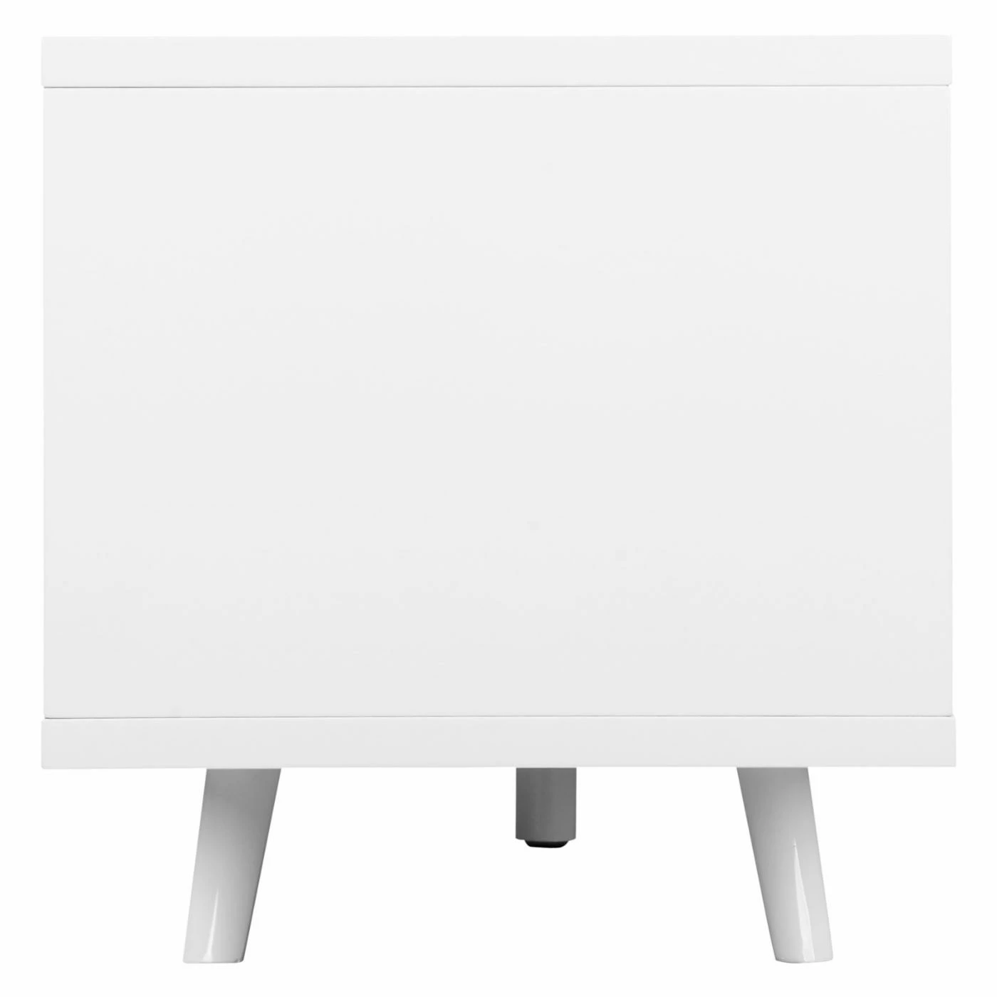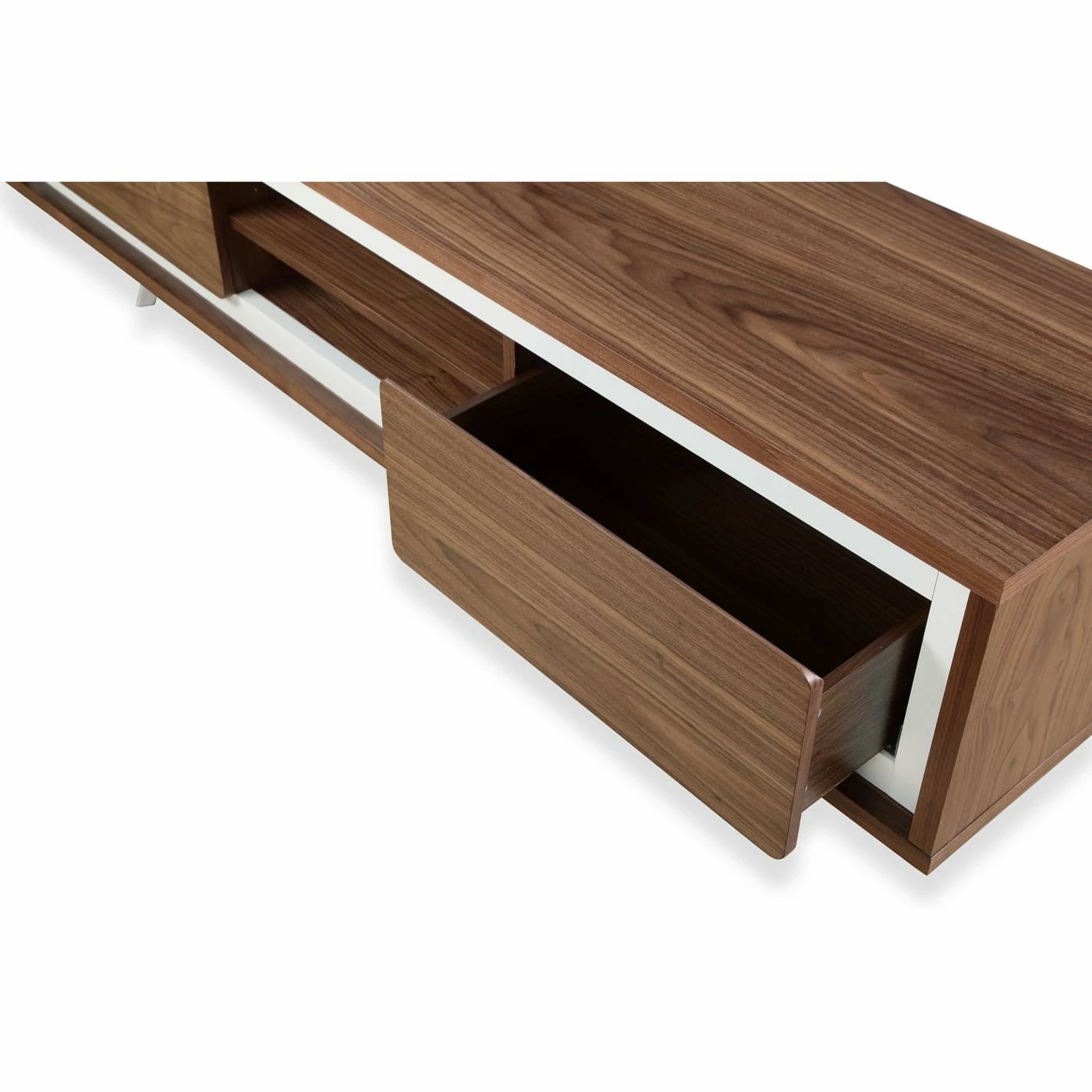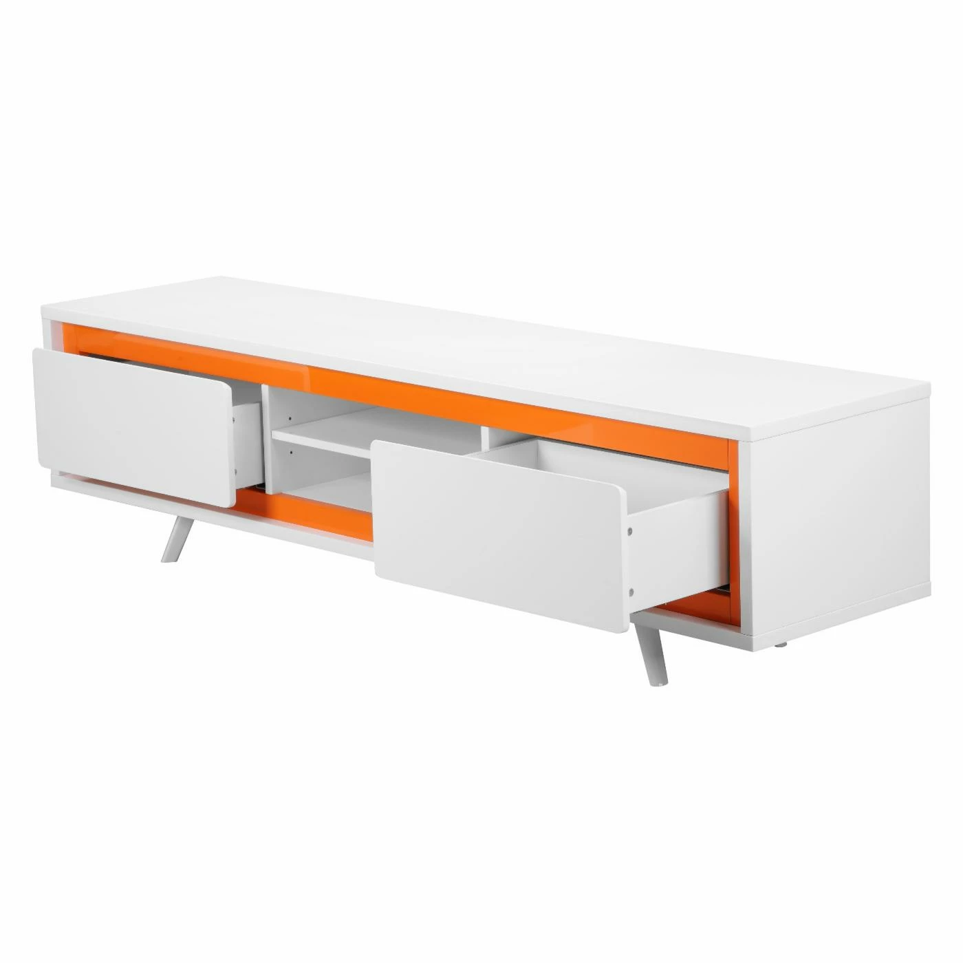 Enliven your interior with the retro mod stylings of the Pangea Home AVA TV Stand. This spunky, streamlined piece is made with steel, select woods, and veneers finished with a high-gloss lacquer that oozes a futuristic charm. You can customize the color from a range of options, including black, green, orange, and walnut. Two sizes, a 59-inch and a 71-inch, are available, and depending on your choice, you’ll get 1-2 pull-out drawers and 1-2 open shelf compartments, each allowing for easy organization and display of your media devices. A convenient cord hole in the back allows for hassle-free management of all your wires.