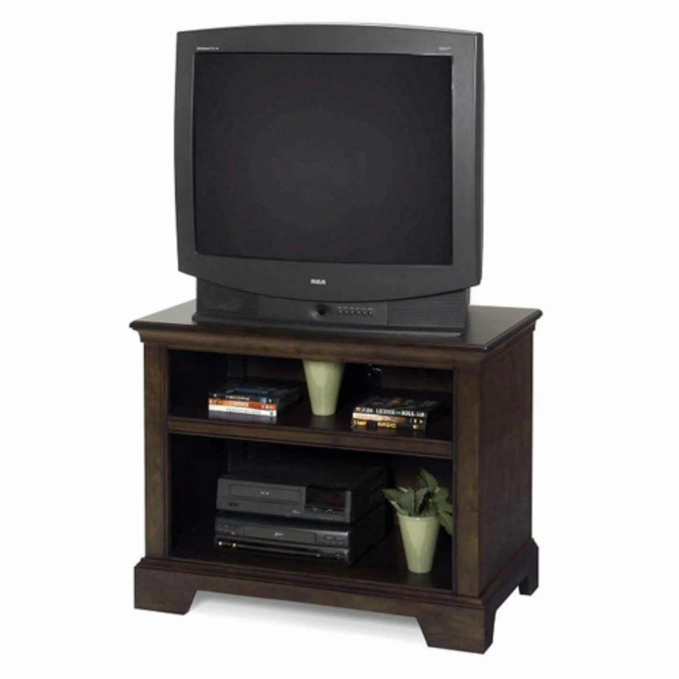 There is something honest about the Progressive Furniture Casual Traditions TV Stand with its simple and functional design. This TV stand features two open shelves, perfect for storing electronics and media, and can hold up to a 36-inch television. The warm walnut finish makes it work well in any casual space. No assembly required.