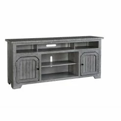 - Features one adjustable shelf in center and two doors with adjustable shelves behind