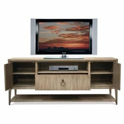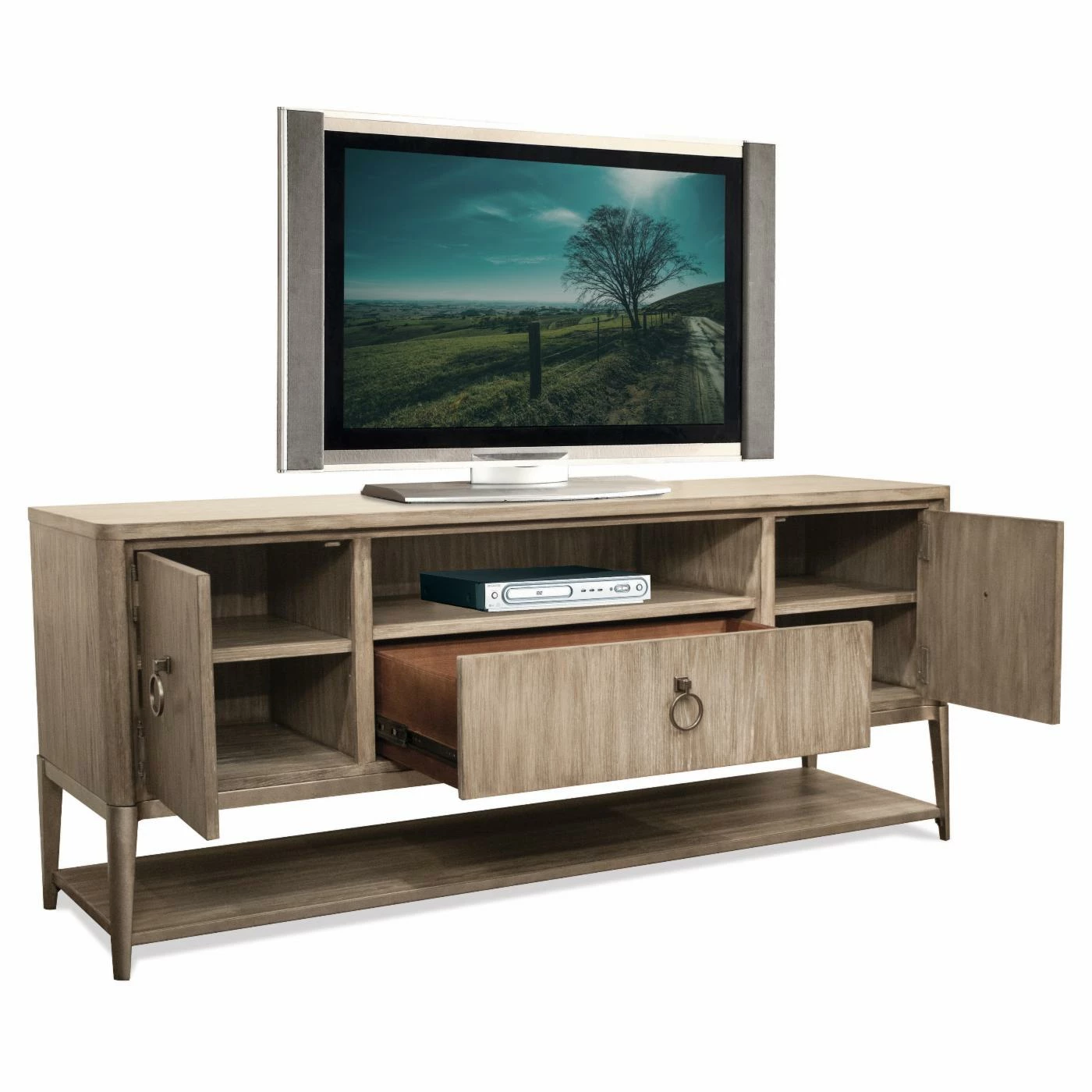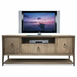 You don’t have to have a large home theater to enjoy the many features of the Riverside Furniture Sophie Entertainment Console. The contemporary design keeps electronics and media neat and organized with an open shelves, a spacious drawer, and roomy cabinets. The natural finish and metal accents add a sophistication that’s both relaxed and stylish. With details like dovetail joints, smooth-rolling glides, and cable management cutouts, it’s easy to see why the Riverside Furniture Sophie Entertainment Console is the perfect choice for your home electronic furniture needs.