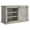 Complete your farm-inspired living space with the Signature Design by Ashley Wystfield 2 Door TV Stand. This stand features a two-tone finish with weathered, industrial hardware for a completely coordinated, rustic vibe. Double sliding doors with mesh screens are the finishing touch for this eye-catching piece. Store all your electronic consoles and home media accessories on the three tiers of spacious shelving. Choose from the available size options to suit your TV screen needs.