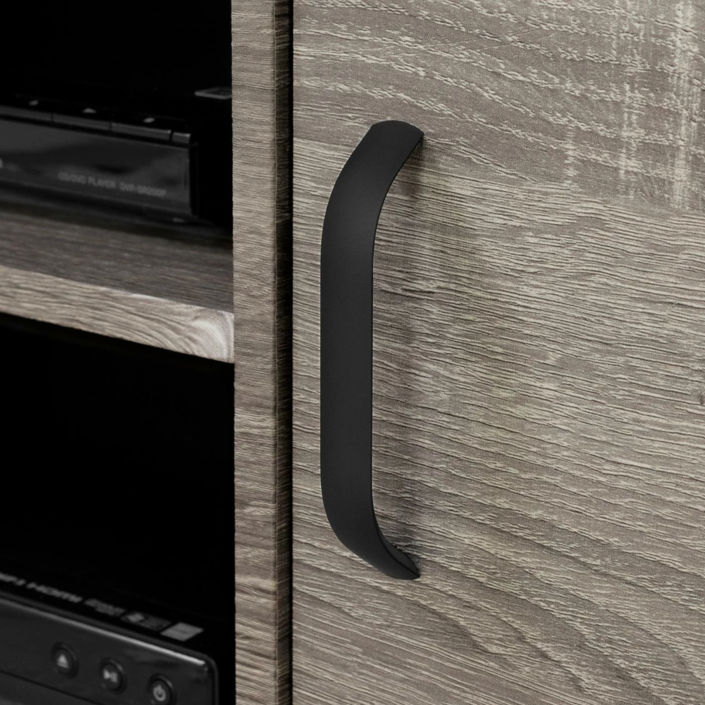 The South Shore Evane TV Stand – Oak Camel will add mid-century style to your dΓ©cor. Crafted from engineered wood, this TV stand is perched on metal hairpin legs for a bold designer look. It features open shelving and enclosed storage, so you’ll have plenty of space to stow items like consoles, DVDs, and other media items. It boasts a versatile oak finish to ensure pairing ease.