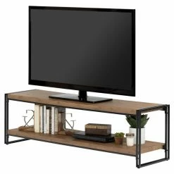 Add an industrial look to your living space with the South Shore Gimetri TV Stand. This TV stand is crafted from wood and features a distinctive two-tone finish that enhances its contemporary style. It’s made for use with flatscreen TVs up to 65 inches and can even be used as a coffee table if you prefer thanks to its low-profile design. Its lower open shelf is perfect for storing books or media equipment. Assembly is required.