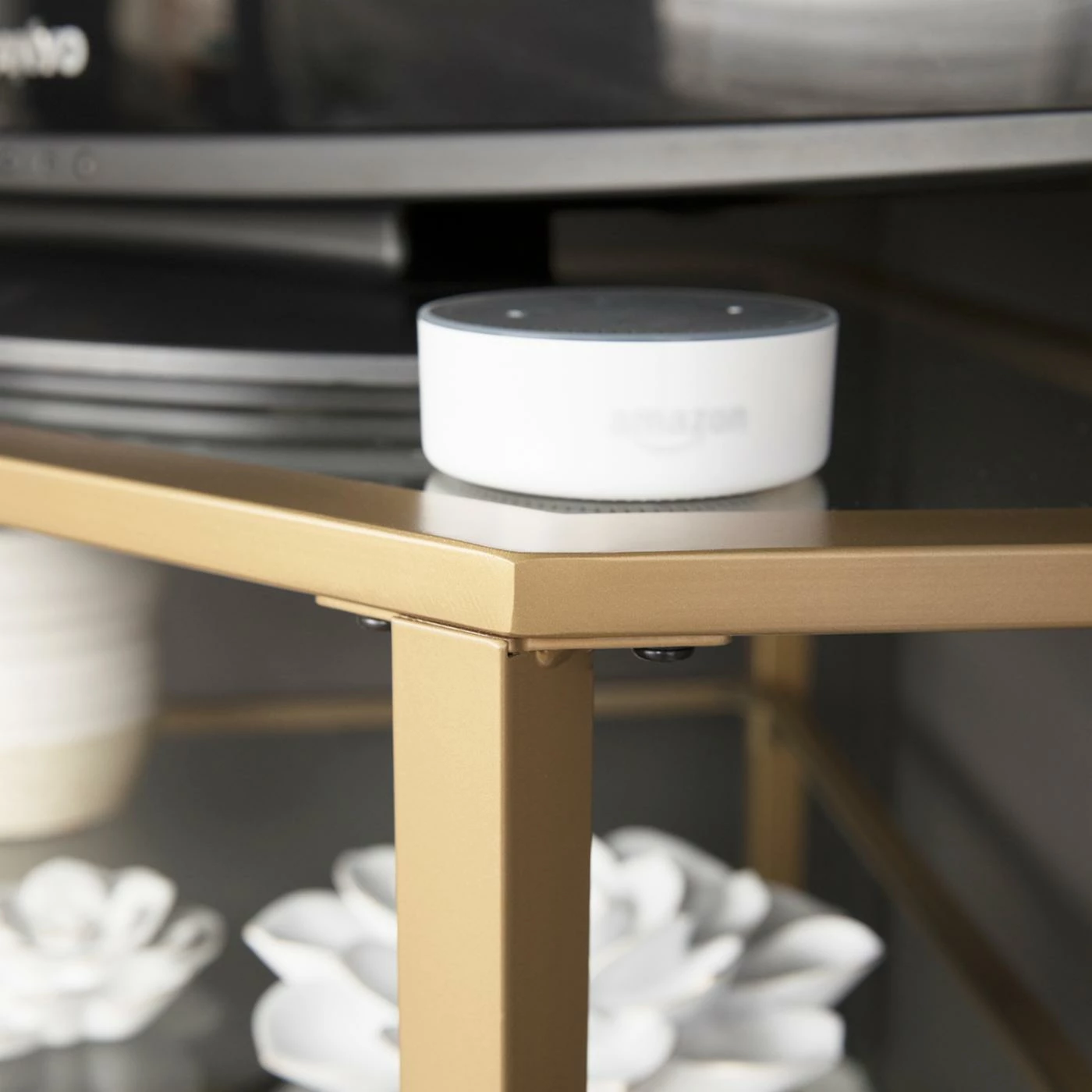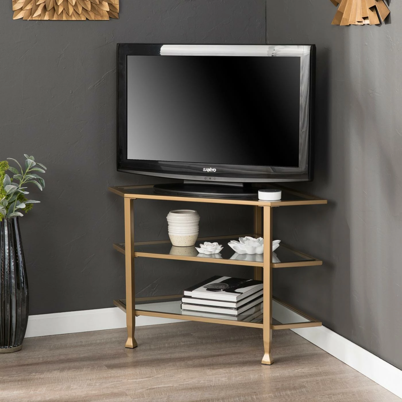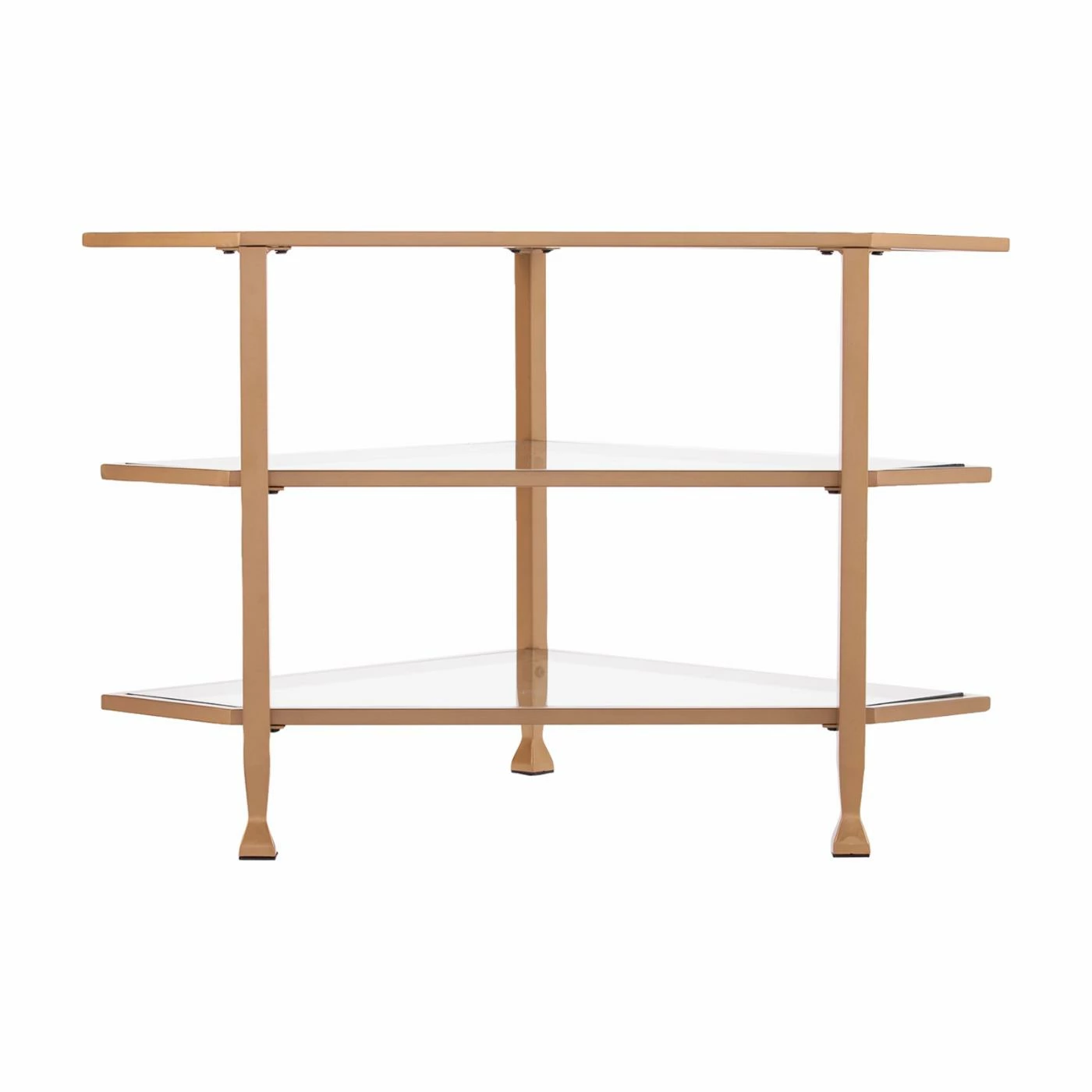 Your living room will have a charming, luxurious-looking accent with the Southern Enterprises Jaymes Corner TV Stand wedged in the corner. This TV stand is made to be sturdy and dependable, with enough shelf space to hold your audio system and decorations in addition to your television. After you set it up, settle in and get ready to enjoy your favorite shows and movies.