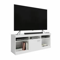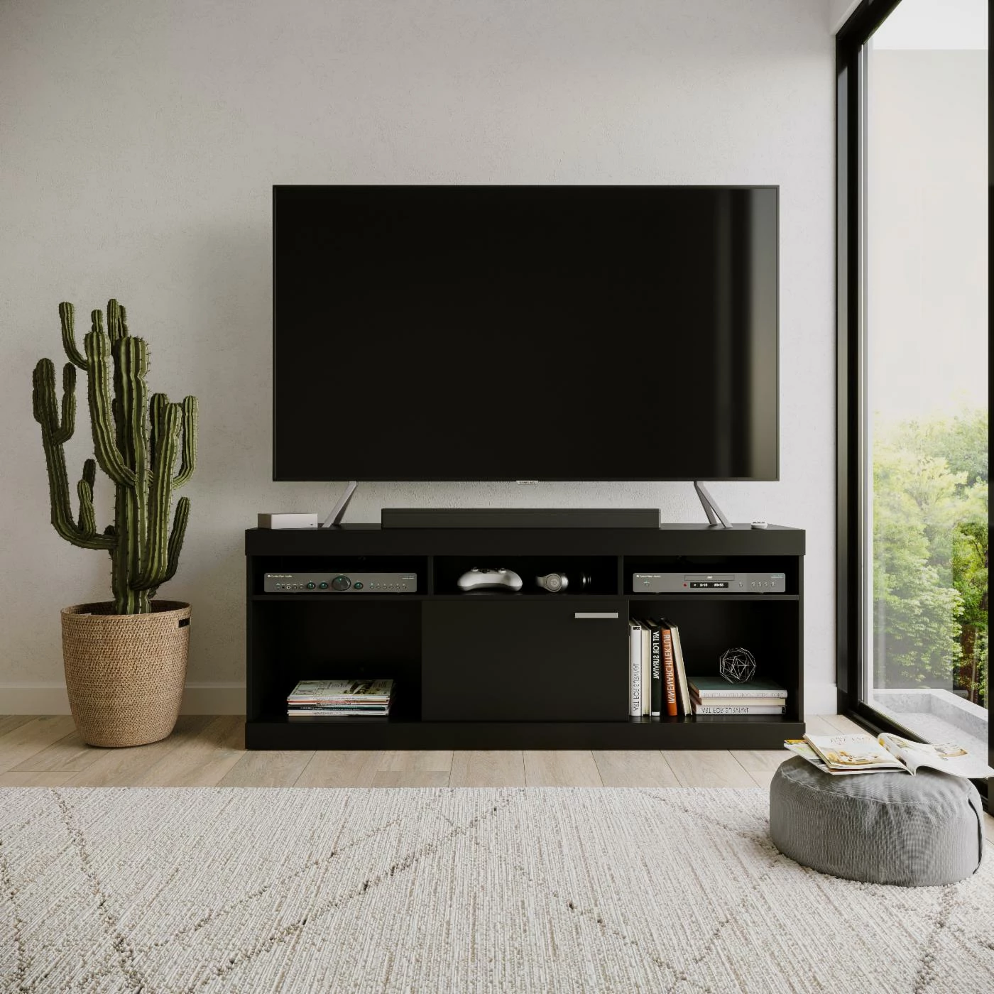 - Two open storage space and one sliding cabinet to keep all the large items like speakers and accessories organized