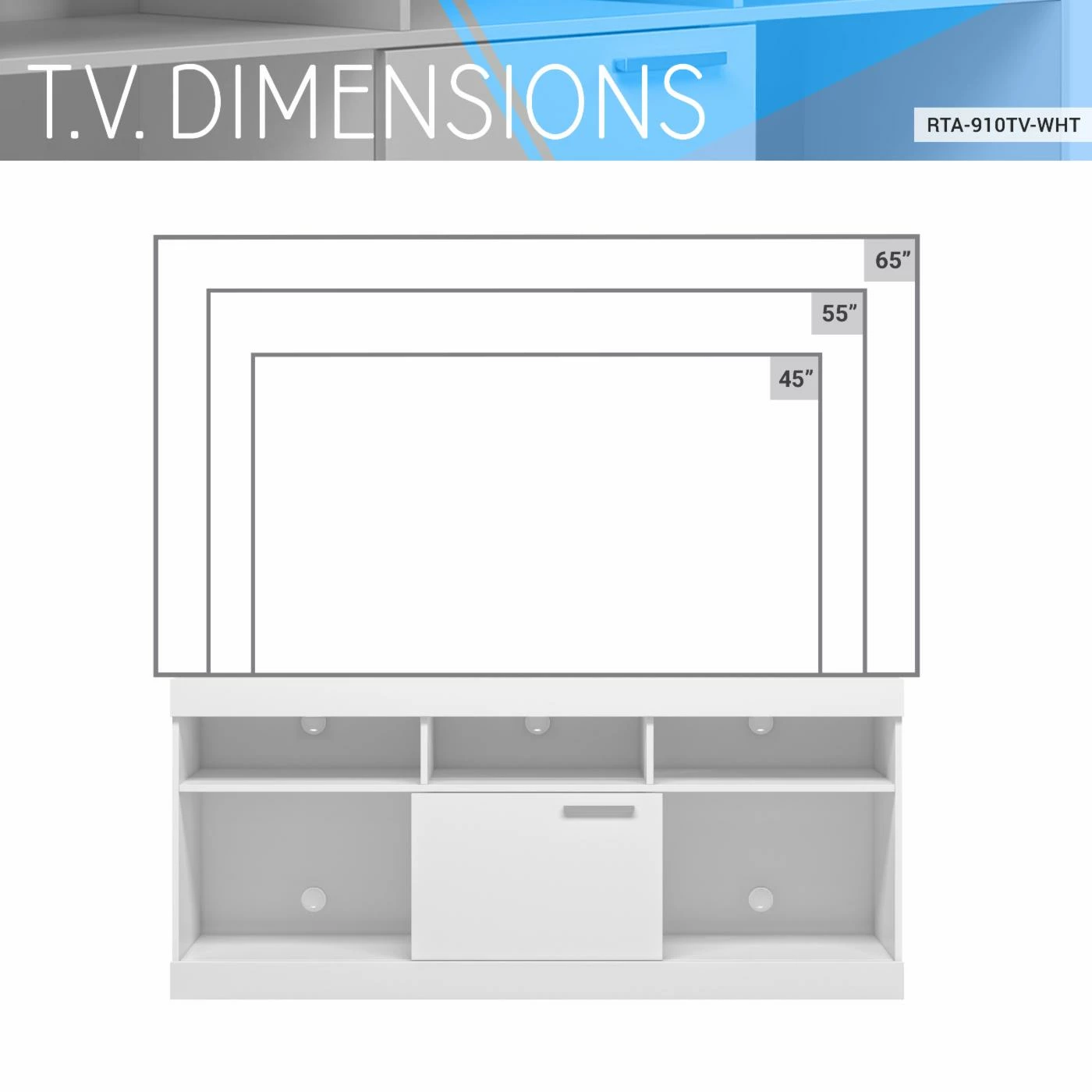 - Holds TVs up to 61 in. when TV is measured diagonally. The actual unit is 61 in. wide, but any additional TV overhang on either side is suitable