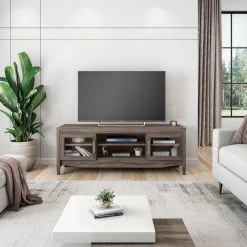 There’s a chance you could love your favorite show even more when you have the Techni Mobili Driftwood TV Stand. This rustic-inspired piece is made with premium MDF wood in a gray finish. It can hold most TVs up to 65 inches and includes front shelving for keeping media components. Behind the two doors are more shelves for enclosed storage. Keep unsightly cables and cords concealed with the back panel opening.