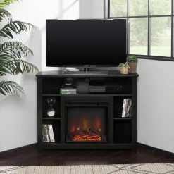 The Walker Edison 44 in. Wood Corner Highboy Fireplace TV Stand rejuvenates your entertainment space with its chic aesthetic and electric fireplace insert. With a corner-friendly design durably constructed of thick-texture, high-grade engineered woods and a customizable range of finish options, you’ll love the way this piece complements the rest of your interior dΓ©cor. Its adjustable side shelves accommodate all of your media components and essentials, while the cable management system organizes your cords and cables with ease. The large top surface can support up to a 60-inch flat panel TV. Ships ready-to-assemble with instructions.