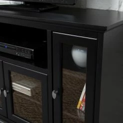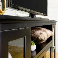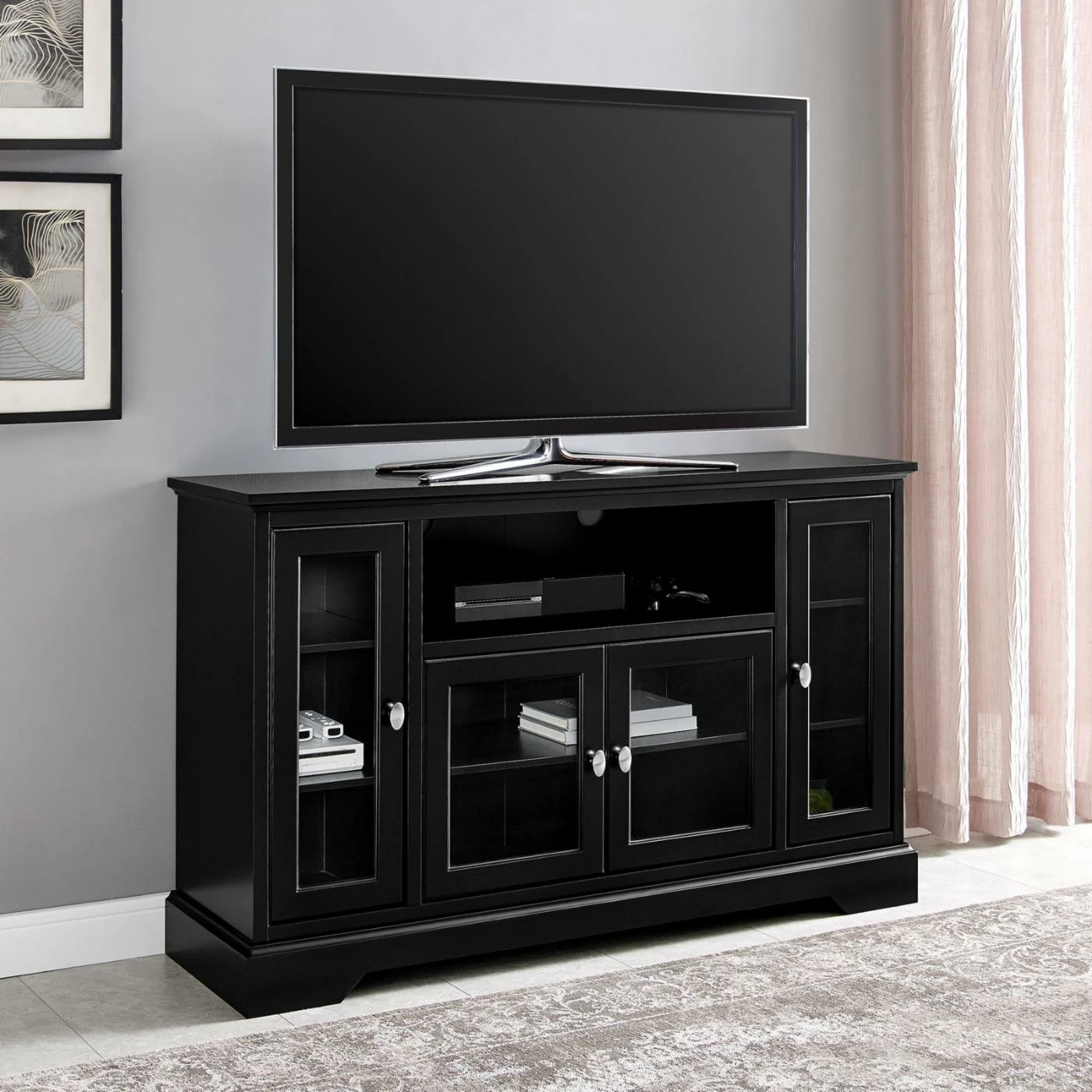 Give your modern electronics a classic appeal with the Walker Edison 52 in. Highboy Style Wood TV Stand. The rich finish and sparkling glass doors make for a gorgeous addition to your family room or den. Enough space for display and storage, this piece is the perfect finish to the job.