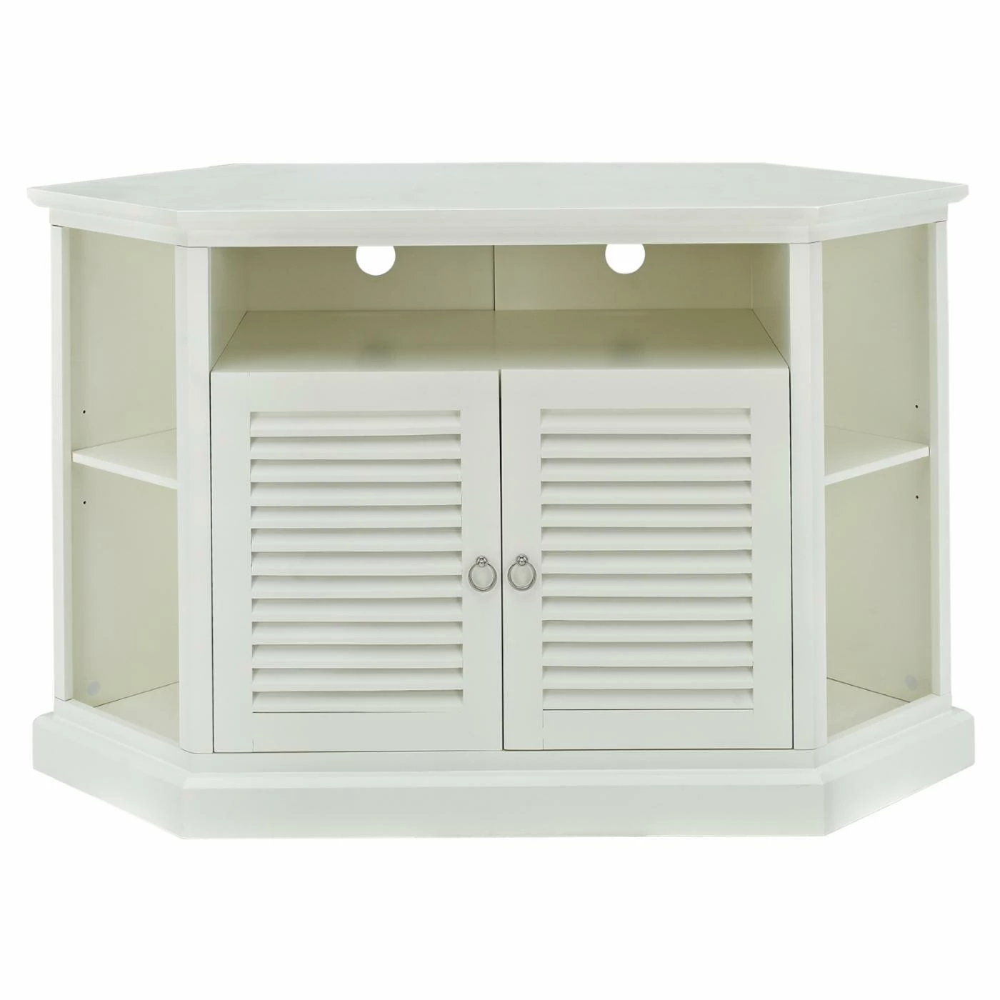 Even small spaces can have stylish storage and display with the Walker Edison Wood Corner TV Stand. The space-saving corner design is big on charm with unique and attractive louvered doors and a rich finish. Give your TV a beautiful display.